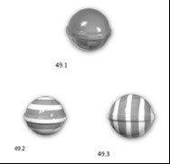視圖49.2和49.3的RCD-49與D2都是有明暗對比條紋的球形,唯一明顯的區別在於條紋的方向不同,D2的條紋在球的兩極聚合,而RCD-49的條紋則是平行的。然而,相當認知的使用者知道,球體形狀不具有特定的方向,並且將條紋應用於球形指有兩種方式,不是平行的環圈,就是在兩極將其聚合。因此,視圖49.2和49.3的RCD-49會產生與D2相同的整體印象。