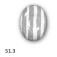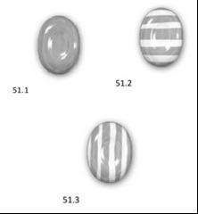 訴願會將RCD-51與先前設計D1進行比對(如圖14所示),RCD-51是一個橢圓形體有著橢圓形表面,其表面為單色(視圖51.1),雙色為橫條紋(視圖51.2)或雙色為縱條紋(視圖51.3)。先前設計D1是棕色光滑的橢圓形,表面中央呈圓形凹痕狀。視圖51.1和RCD-51產生與先前設計相同的整體印象。因為兩個設計都具有光澤的橢圓形體的特徵,深色的表面和頂部漸縮的特徵。