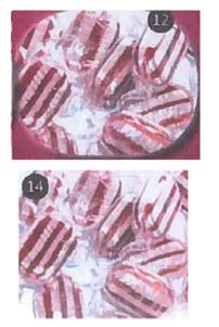 TeamLava公司從EUTM(歐盟商標)資料庫檢索的一個有顏色的立體商標(如圖14左側所示),1998年3月30日申請的糖果類商標,序號是No 784314(簡稱D1),2001年1月25日被EUIPO核駁。2011年及2012年「Sweet ideas Confectionery & Fine Food Wholesalers」產品型錄(簡稱D2)的內頁,其中包含「humbugs」的圖片;以及「Farrah’s of Harrogate 1840 – 2011」型錄(簡稱D3)的內頁,其中包含有「striped humbugs」特徵的廣口瓶圖片。