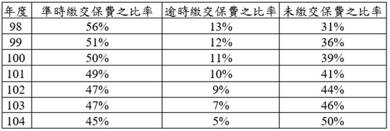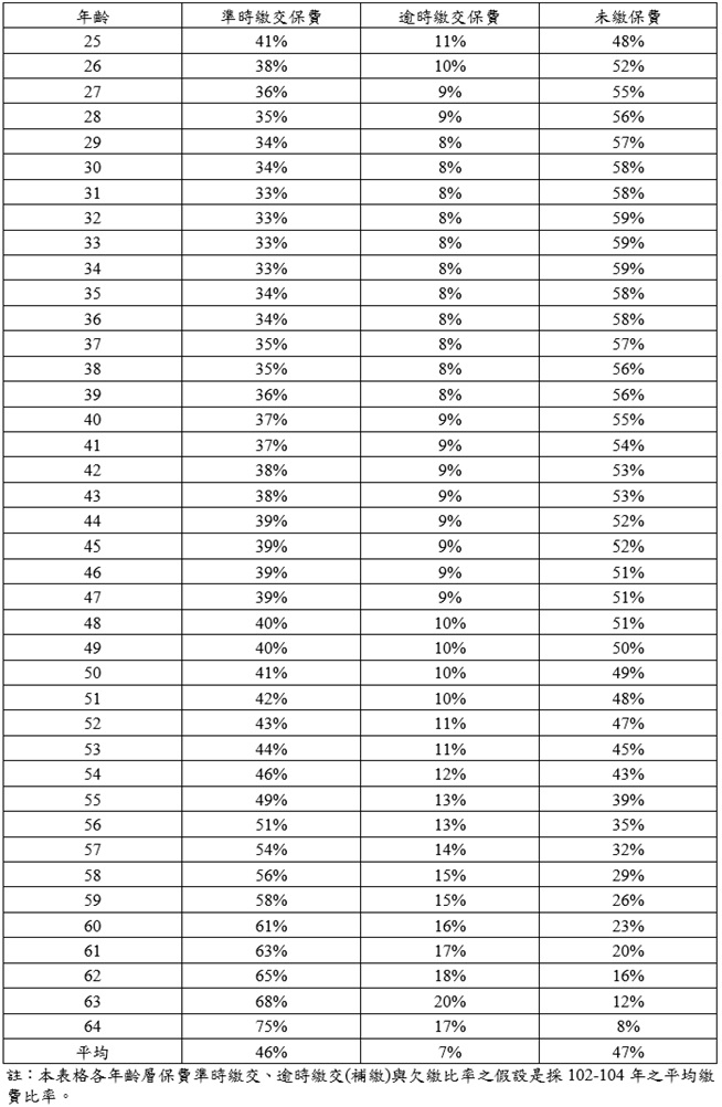 在設計國民年金制度時,因為滿65歳符合條件資格,才可開始領取國民年金老年給付;這意味著越年輕的族群,從開始繳交保費,到確定自己能領到老年給付,這段時間相當長,而且有極高的不確定性,所以國民年金實施以來,準時繳交保費的比例逐年下降,從56%降到46%,而且納保對象是未參加勞保、公教保、軍保、農保者,實務上大多是未就業的家庭主婦、失業者,他們沒有穩定的收入來源,與其繳納這些遙遙無期,看得到未必領得到的吸血保險,還不如把不穩定的收入用來日常花用,畢竟遠水救不了近火。