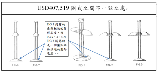 法院說明:專利發明人陳先生同意,他無法確定所要保護的桌燈底座是平板還是圓弧錐頂。還有D591專利的FIG.5顯示出無邊緣的堅實表面,這不應該被描繪成堅實的表面,而是下方凹入邊緣陰影的空心燈罩內側。Seed Lighting自己的證人似乎同意專利圖式是有缺陷和不明確的。Seed Lighting沒有提供任何證據、事實或專家證詞,可以排除其專利權範圍不明確而無法據以實施的事實,因此,D591專利因不明確而專利無效。