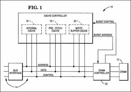 如圖1所示,三個快取分別為internal cache 16、per-fetch cache 18以及write buffer cache 20。舉例來說,internal cache 16可依據處理器的種類來儲存code以及non-code資料或是只儲存code資料,Visual稱這種技術為「可程式化的運行特性(programmable operational characteristics)」。