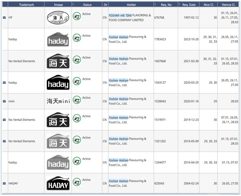 - 集中管理:借助馬德里體系,海天能夠集中監控每個商標的狀態和續展截止日期,這為其全球品牌監控系統提供了支撐,並確保了其商標國際註冊的安全。