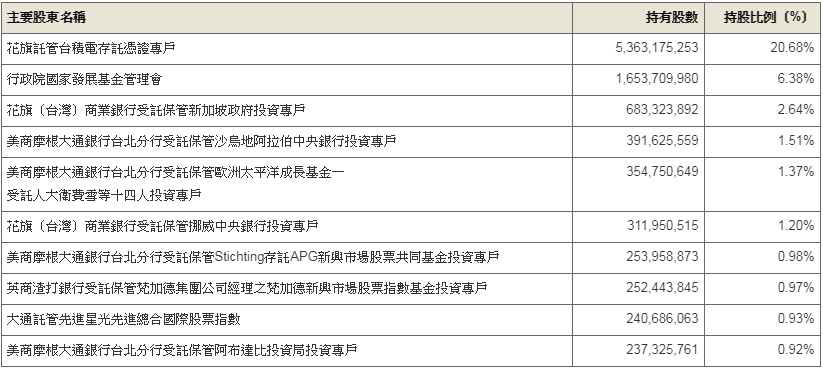 國發基金也是台積電大股東