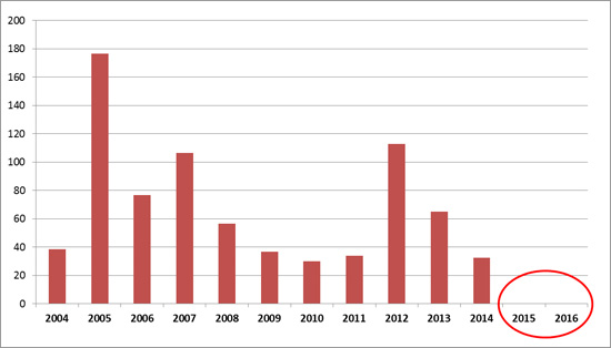 當然,台杉今天經營的是產業投資,與彰銀或年金改革的情況並不相同,但政府股東:國發基金的定位也很值得探討。舉例來說,雖然國發基金號稱有超過四千億元的規模,更有台積電這樣的獲利金雞母,但已經連續兩年未能繳交獲利給國庫,2008年以後,也只有一年的繳庫金額超過百億元,對國家財政的幫助簡直杯水車薪(見圖1)。
