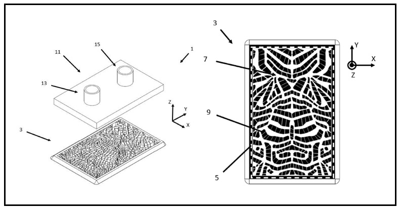 图2 专利说明书中待散热组件底部的爆炸图与顶视图;图片来源:USPTO